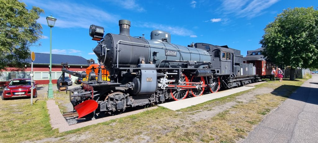 Detta fina ånglok, B 1287, tillverkades av Nohab 1916 och köptes av bilmuseet 2017. Nu pryder det sin plats utanför ingången till museet.