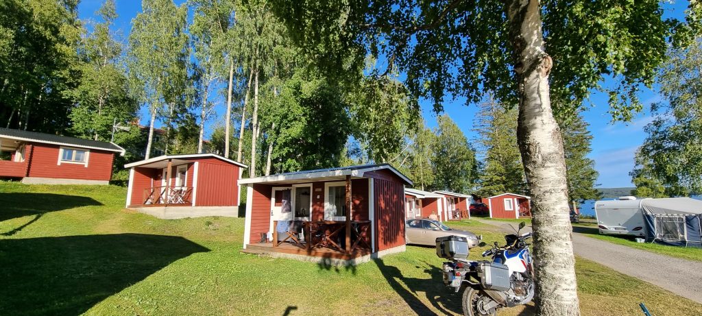 Efter en lång dag körde jag vidare till mitt utvalda övernattningsställe, Snibbens camping i Ramvik, 27 km norr om Härnösand och några kilometer väster om södra påfarten till Höga kustenbron. Här finns det tältplatser för de som så önskar, men det vanligaste var campingstugor i olika storlekar. Campingen ligger mycket vackert invid stranden på en udde i en mindre sjö, och de har blivit prisbelönade år 2022, de blev stolta vinnare av “Campers Choice”. Det var en mycket trevlig camping, inte för stor och bra stugor och sanitära bekvämligheter. Dessutom fanns det en mycket bra restaurang i anslutning till campingen.