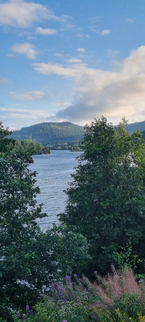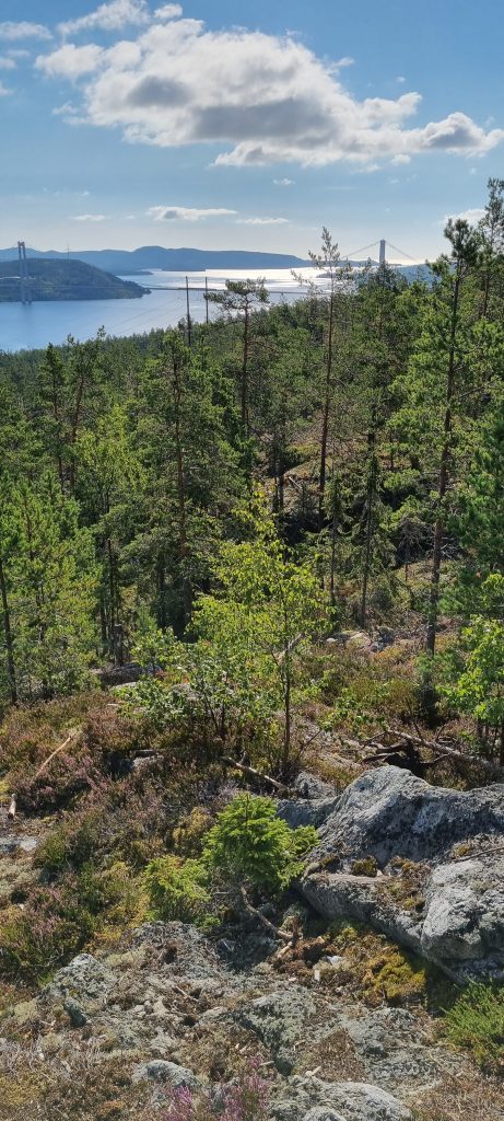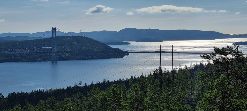 Tredje dagen var det dags att åka “hemåt” igen, till Sveg i Härjedalen. Men innan jag hoppade upp i sadeln igen, på min trogna “mäktiga Africanen” (en Honda CRF 1100, Africa Twin), så gick jag upp tidigt för att gå upp på Prästberget. Berget ligger på ligger på andra sidan vägen av Snibbens Camping. Det var en liten trevlig morgonvandring som tog mig upp till utsiktsplatsen med en vidunderlig utsikt över Ångermanälven och över Höga kustenbron.
