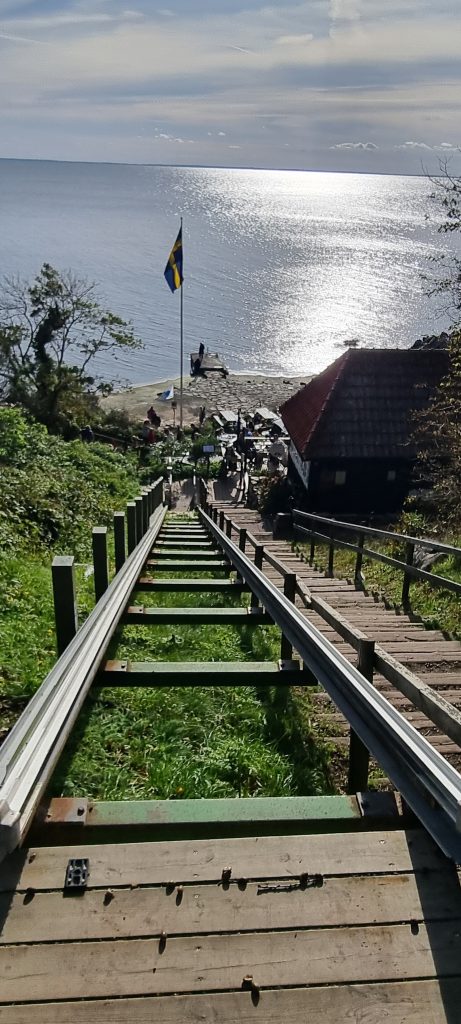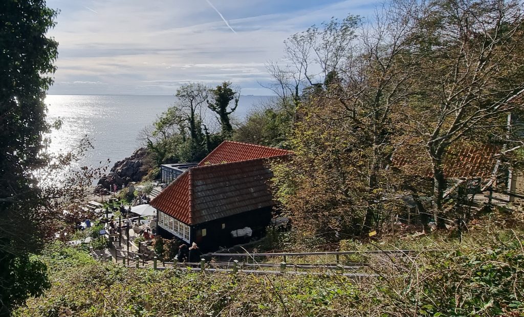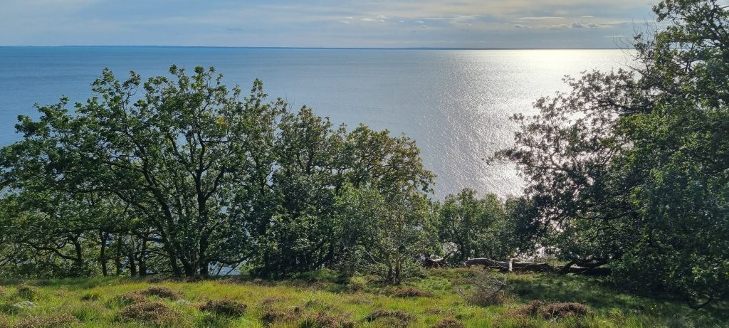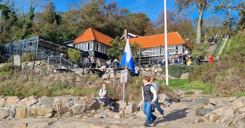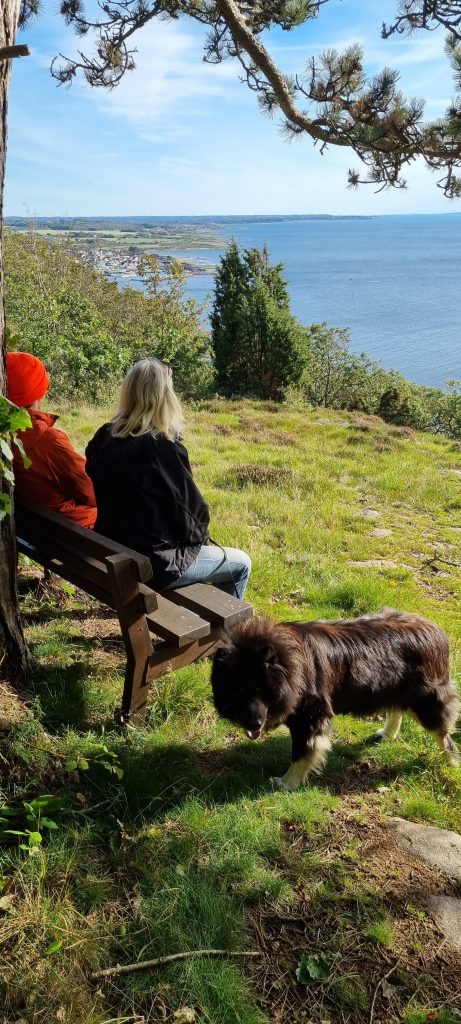 En söndag i oktober 2023 åkte vi upp till Kullaberg för att ta en runda med vår hund, 13-åriga Eurasiern Molly. Denna dag var ovanlig: I stället för den ständiga nordvästliga vinden var det denna dag nordostliga vindar, alltså skydd för vinden på västra sidan av berget. Därför utgick vi med vår hundpromenad från parkeringen som ligger en bit ovanför Ransviks Havsveranda, restaurangen som blivit omåttligt populär de sista åren sedan Andy och Matti tog över den. Denna dag hade de öppet mellan 12 -17, och de flesta platserna i solen var upptagna av gäster.