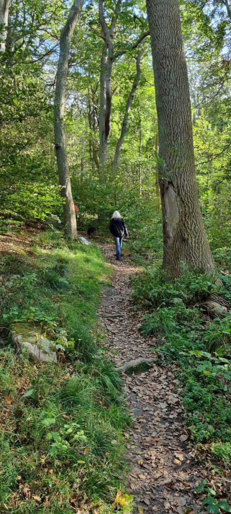 Den populäraste vägen att ta sig till Ransvik är att gå från Mölle på en stig utmed havet med spektakulär utsikt, men vi valde denna dag att gå uppåt på berget men söderut. Denna stig är mindre använd och naturen lite vildare. Vi stötte på flera rådjur och harar, som tur är ser och hör Molly lite sämre på ålderns höst, så de vilda djuren fick vara i fred.